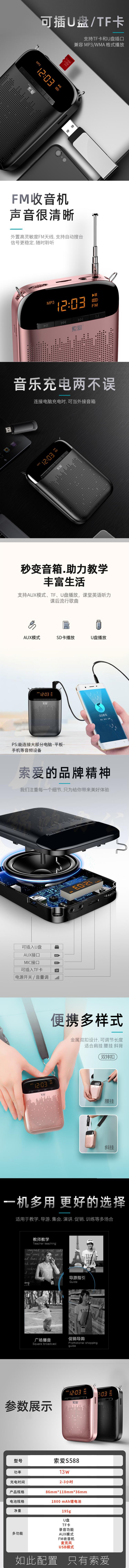 索爱S-588 无线小蜜蜂扩音器13W大功率麦克风蓝牙音箱耳麦播放器