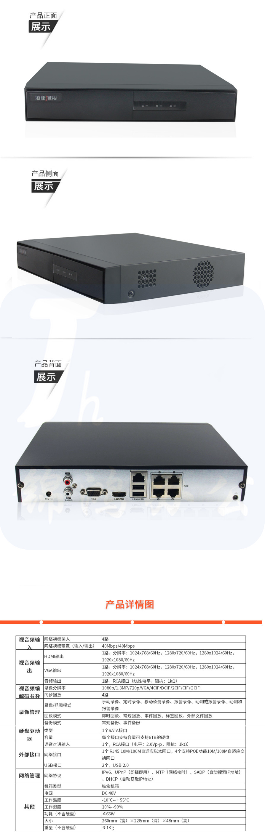 海康威视 DS-7804N-F1/4P(B)(标配) 网络硬盘录像机 (计价单位:台) 货号:JC