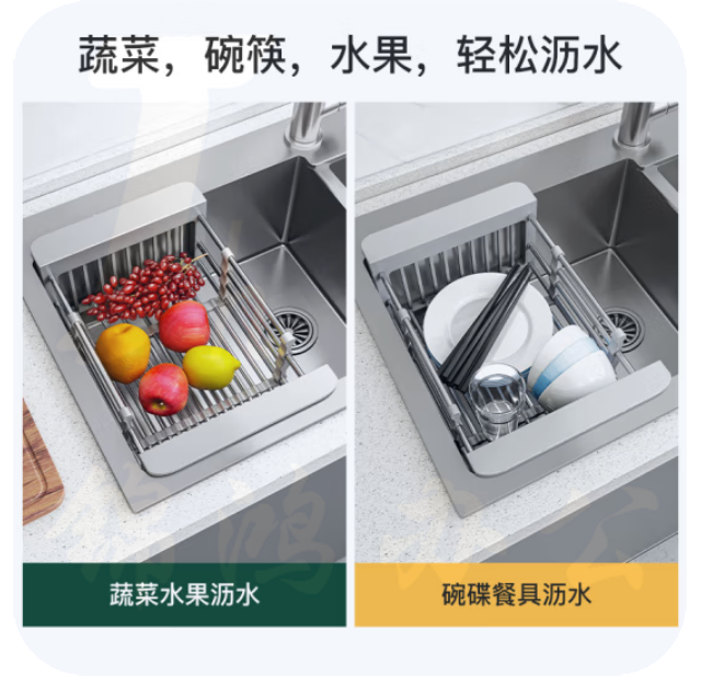 洗碗池水槽沥水架子可伸缩l沥水篮大号灰色