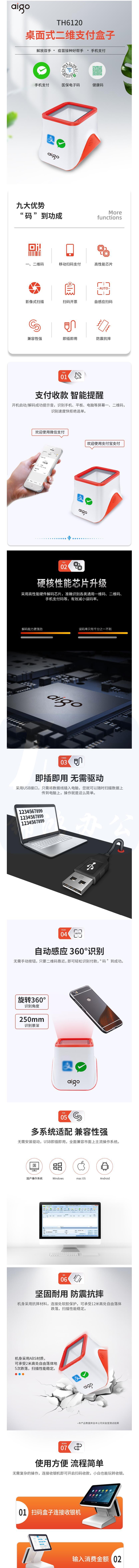 爱国者(aigo)TH6120二维码扫描盒子 收款盒子扫码盒支付盒子