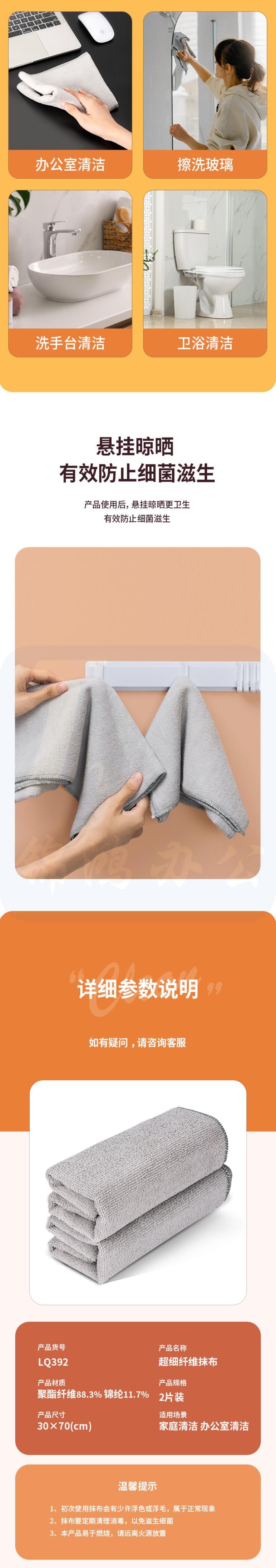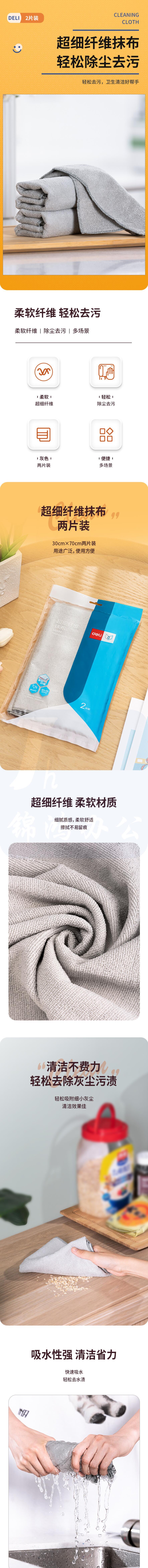 得力LQ392 超细纤维 抹布 30*70cm 2片装 灰色