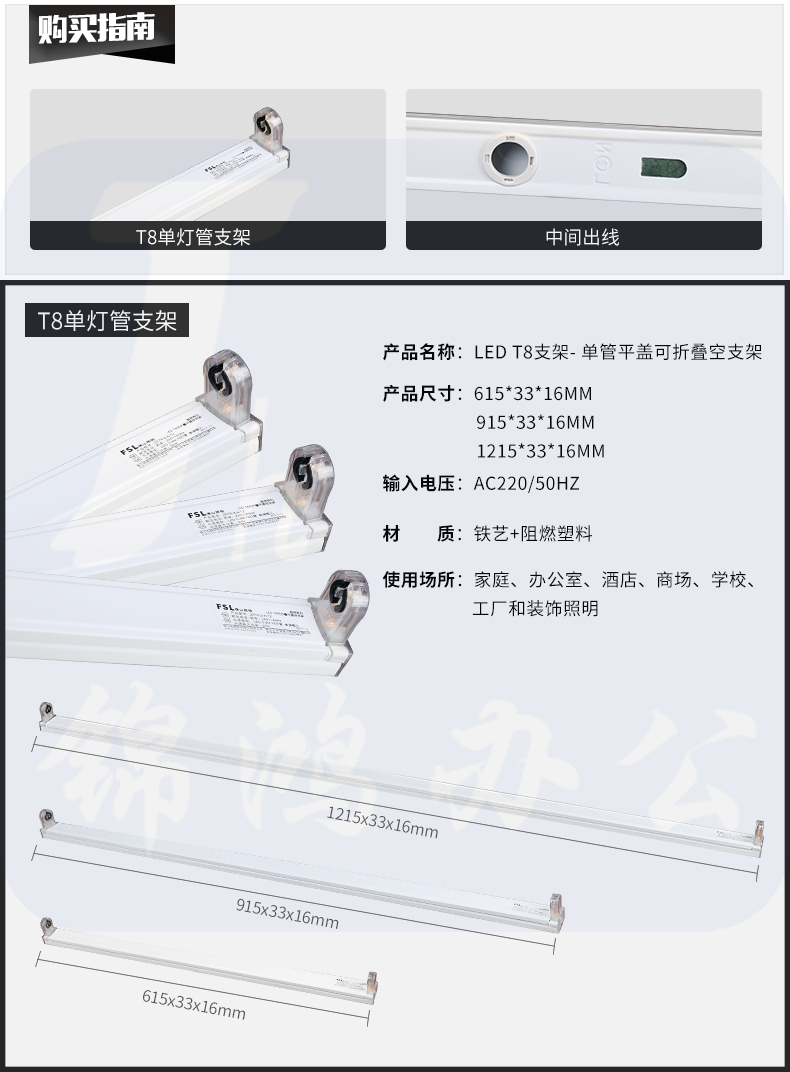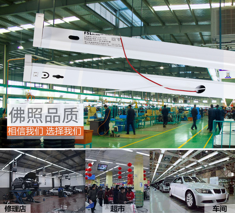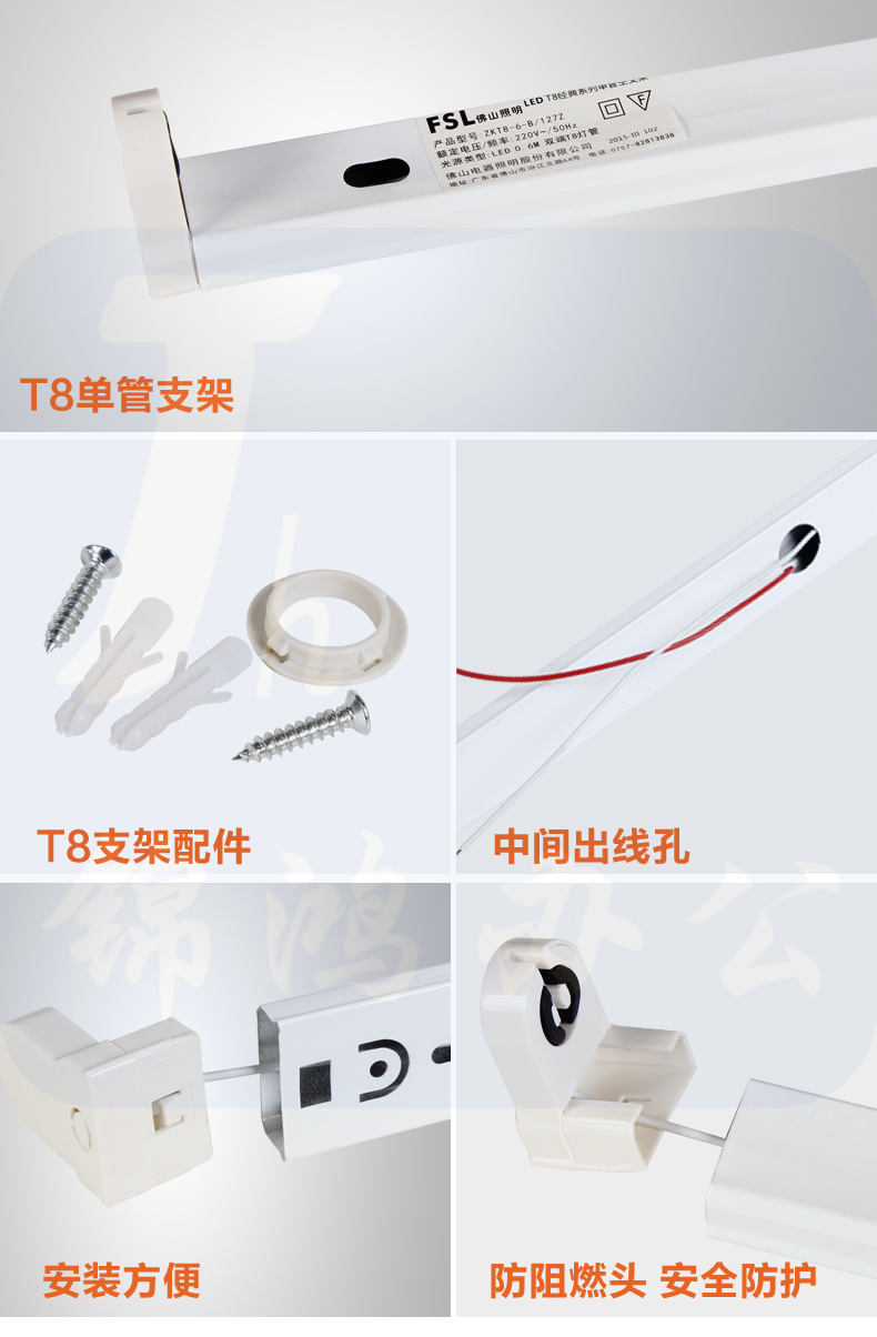 佛山(FSL)T8 单灯管带罩支架1.2米双端供电中间出线 LED灯管专用(不含安装)