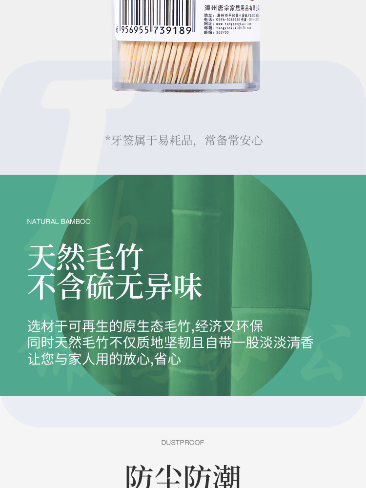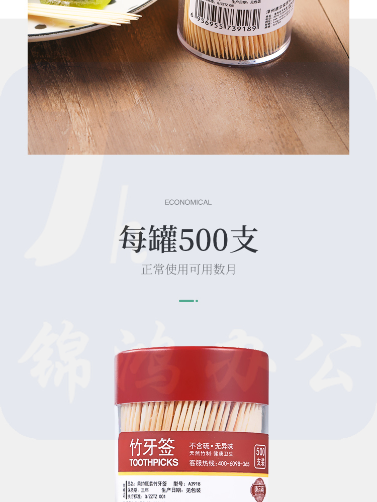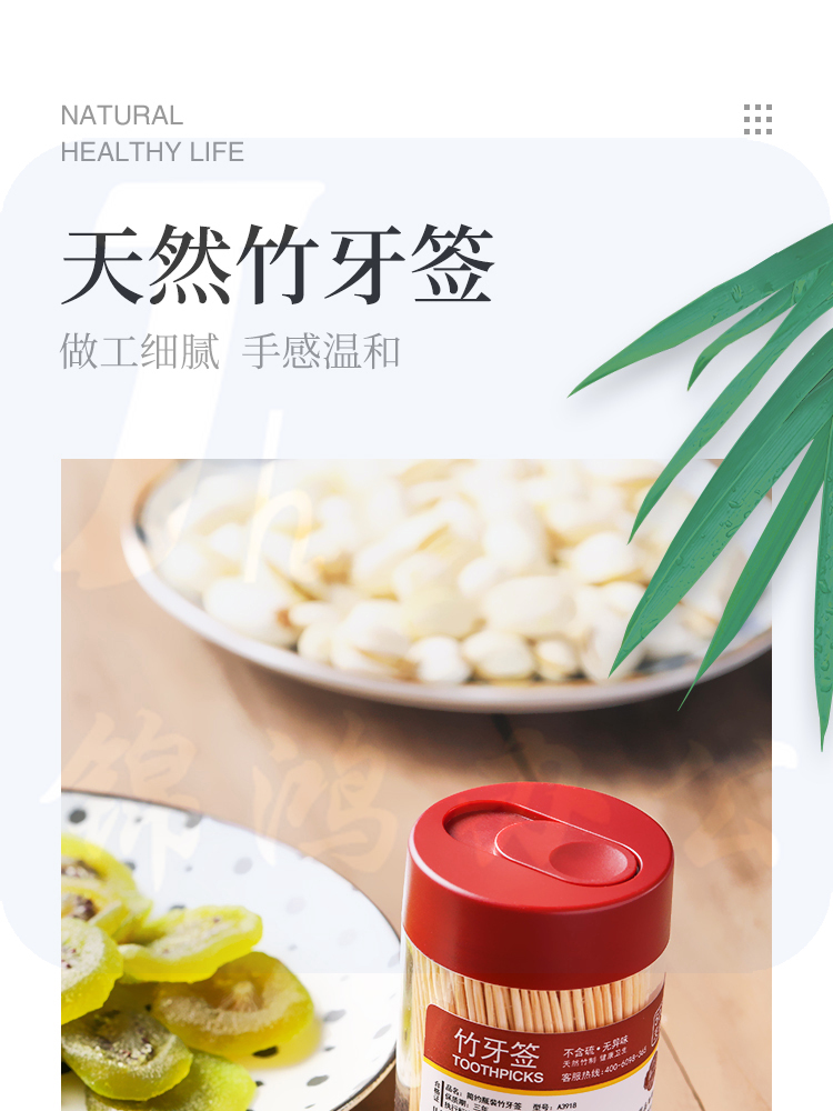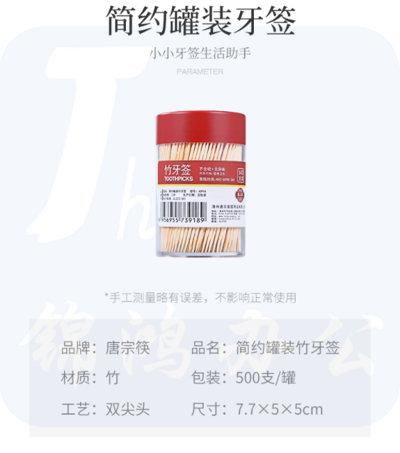 唐宗筷 竹牙签500支装 红简约 单罐装牙签 家用竹牙签 剔牙棒 牙线 A3918