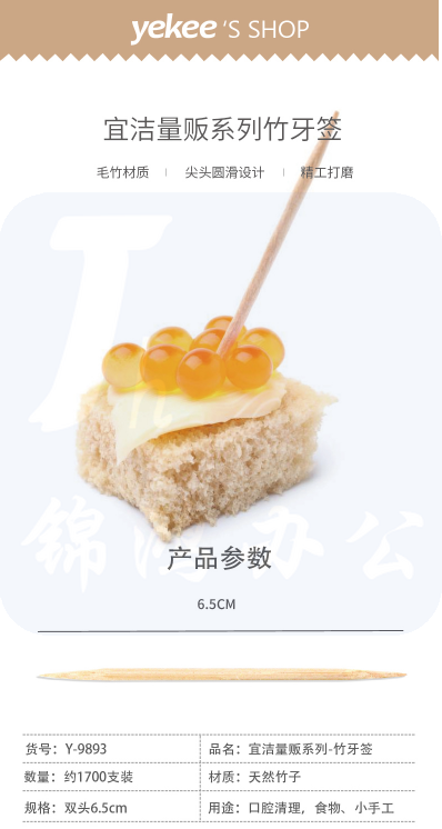 宜洁 牙签袋装竹制牙签量贩装1700枚Y-9893