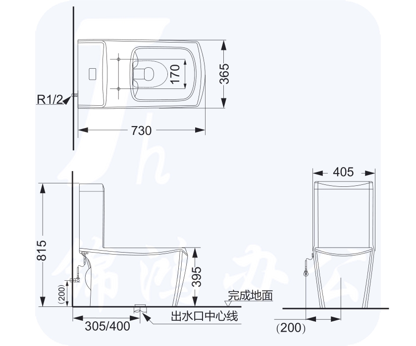 HDC6109A 喷射虹吸式连体坐便器 730×405×815mm 4/6 升双档节水型 UF 静音缓降盖板 坑距 305mm