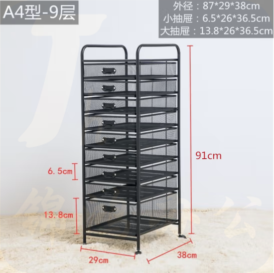 A4文件栏 带抽屉推车文件收纳栏 9屉 货号:WY