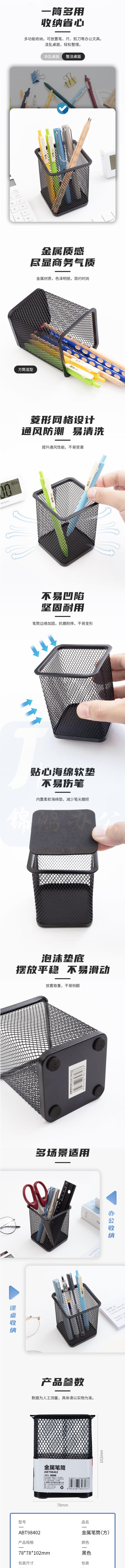 晨光(M&G)金属时尚网格方形笔筒84*84*103mm桌面收纳盒ABT98402