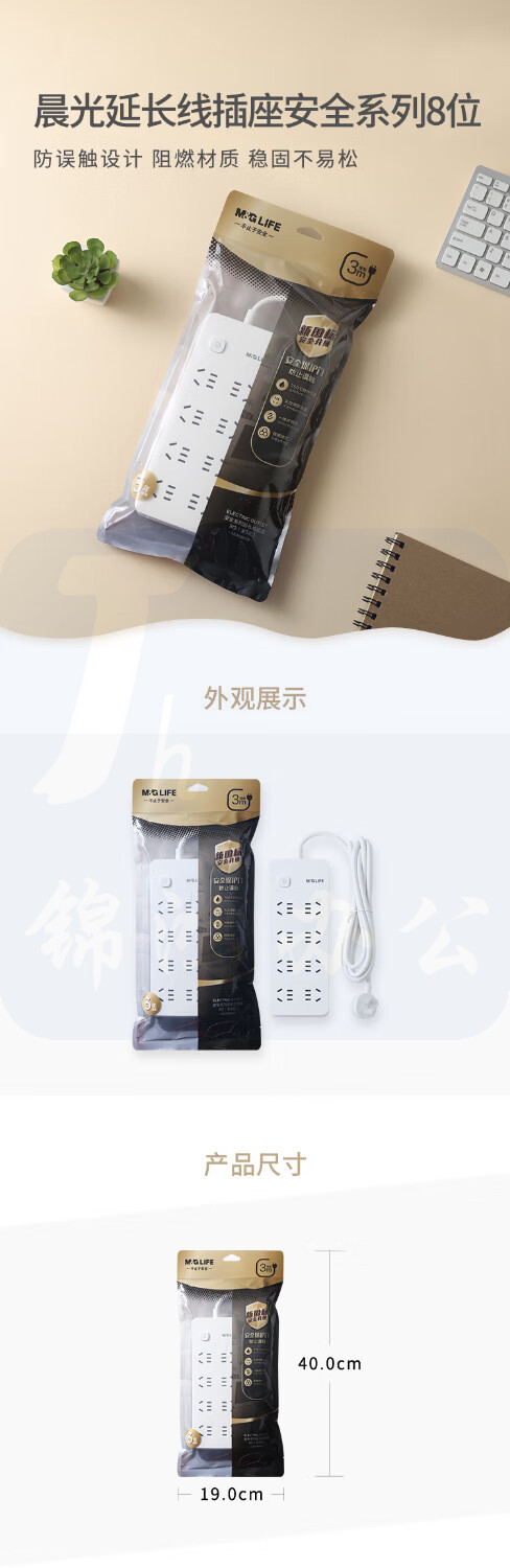 晨光 插排 8位总控 3米全长线 新国标接线板 移动插座延长线插座AEA98699