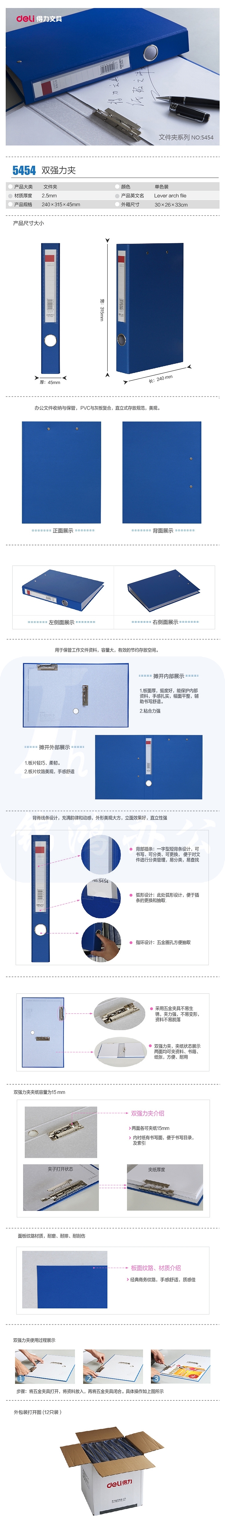 得力 5454 纸板文件夹239x315x45mm 双强力夹 黑色