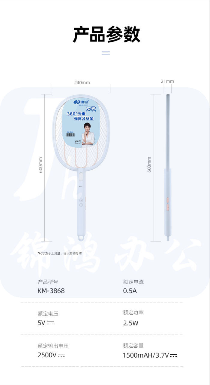 康铭电蚊拍 苍蝇拍 充电式蚊蝇拍KM-3868