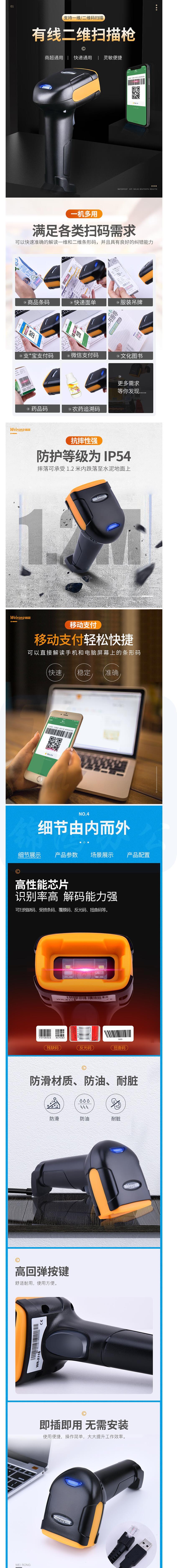 维融 扫描枪二维码有线扫码器 X11S 货号:LJ