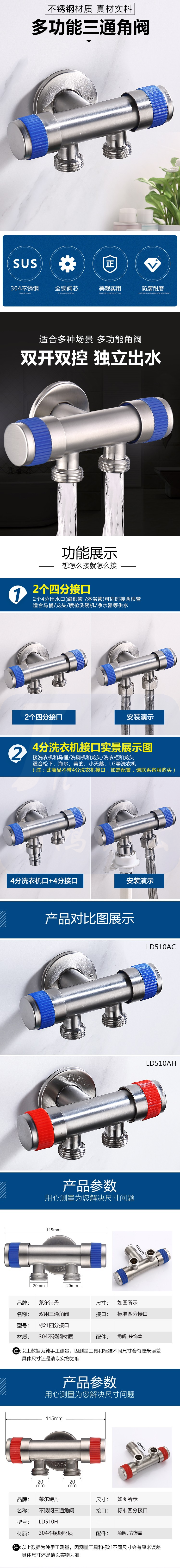 双用角阀 一进二出三通角阀 马桶分水器