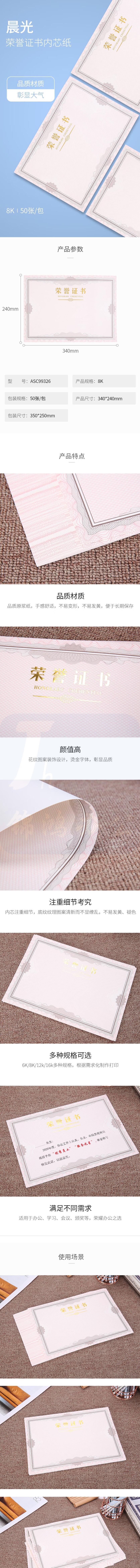 晨光 8K 荣誉证书书内芯纸 证书纸 50张 ASC99326