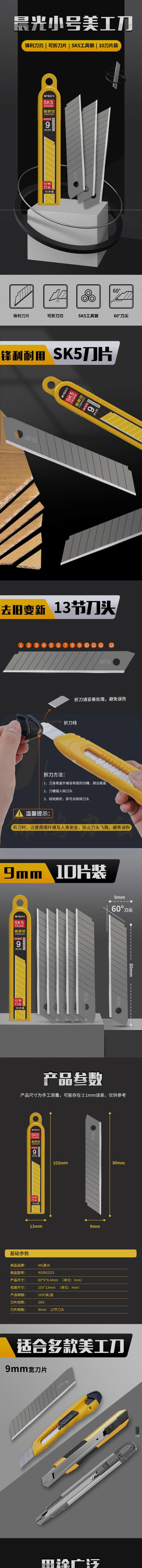 晨光 9mm小号美工刀片 13刀头SK5合金钢刀片/替换刀片 10片/盒 ASSN2231
