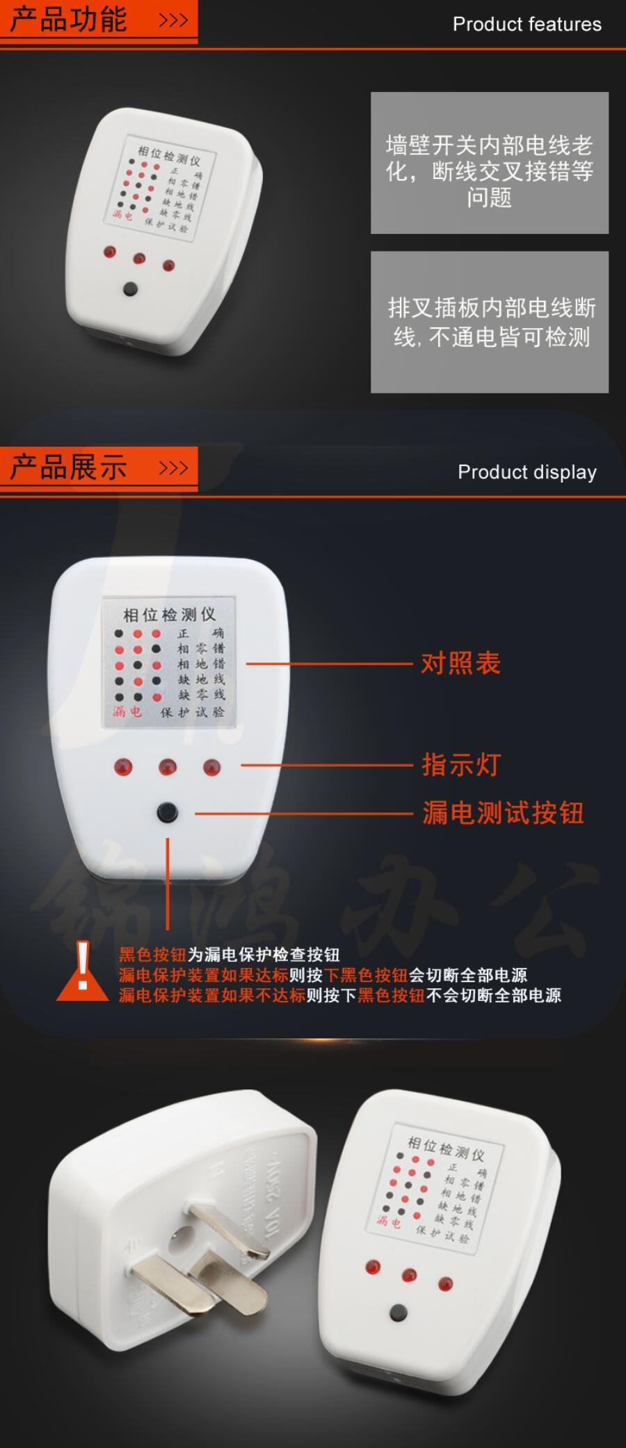10A 验电器插座 验电插头 测电器电路线相位地线检测器