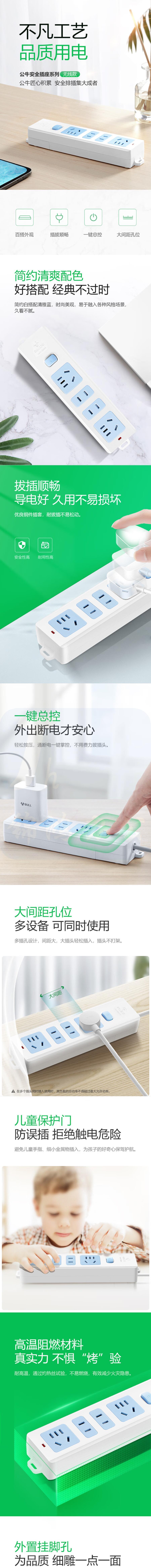 公牛接线板 GN-407W 4位总控无线插座(需自行配电源线和插头)