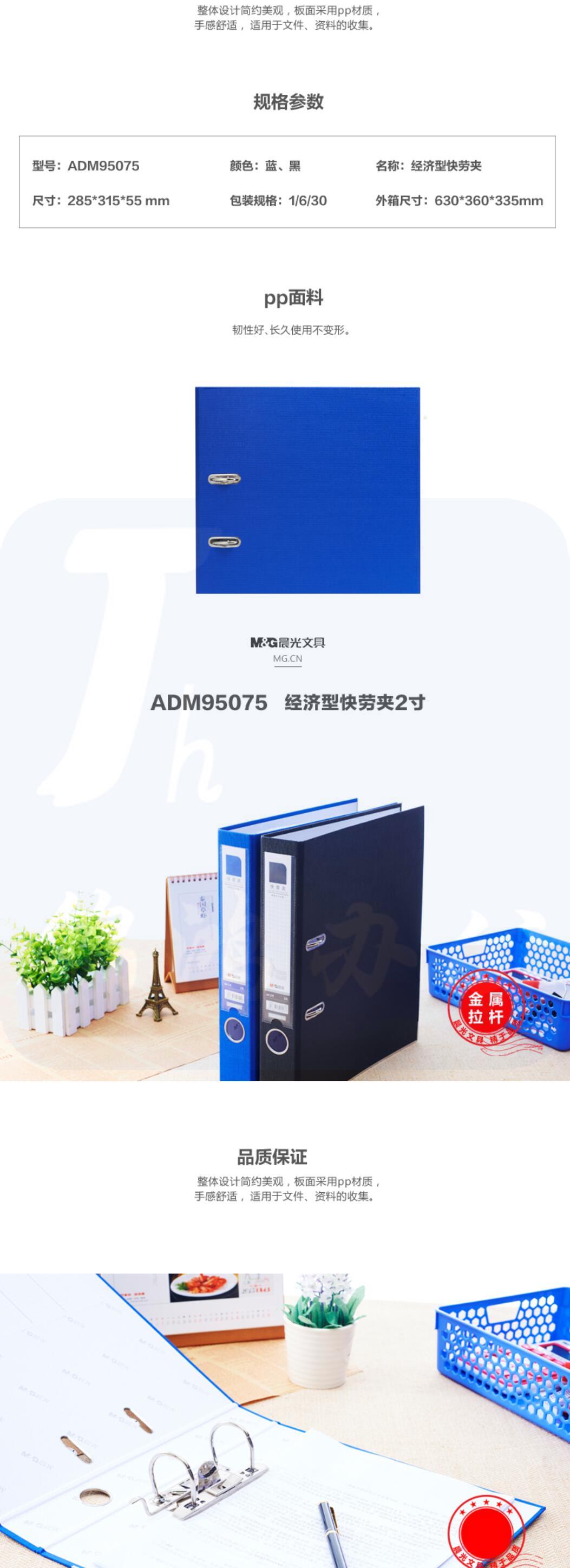 晨光(M&G) A4两孔快劳夹 文件管理快劳夹 2寸快劳夹ADM95075 备注颜色或随机