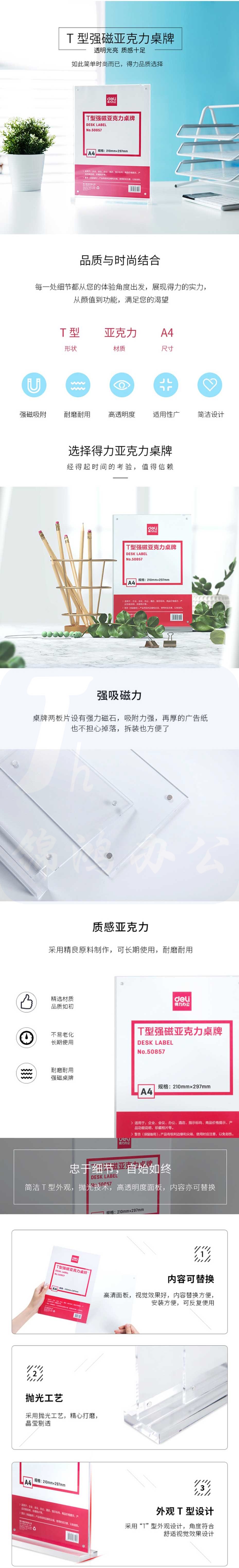得力 T型桌牌 A4竖式强磁亚克力桌牌/展示牌/台卡 50857