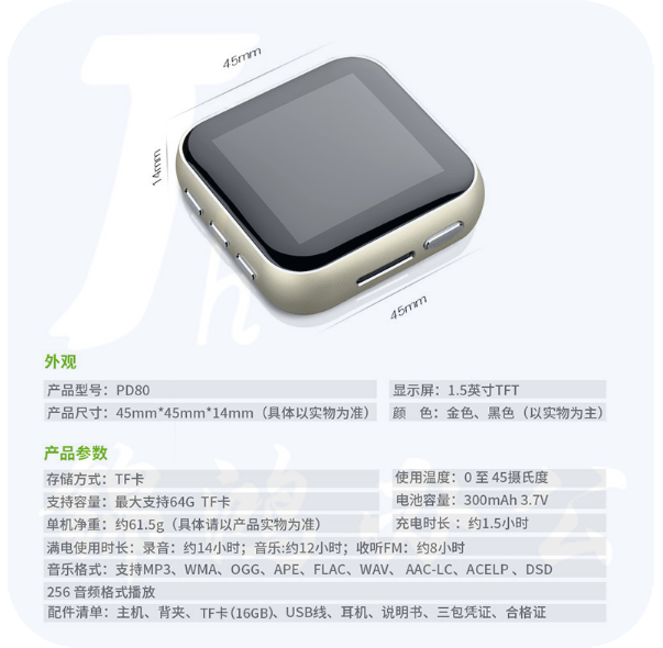 纽曼(Newsmy)录音器 PD80 16G 远距智能高清降噪 学习培训商务会议记录留证 MP3播放器 金色