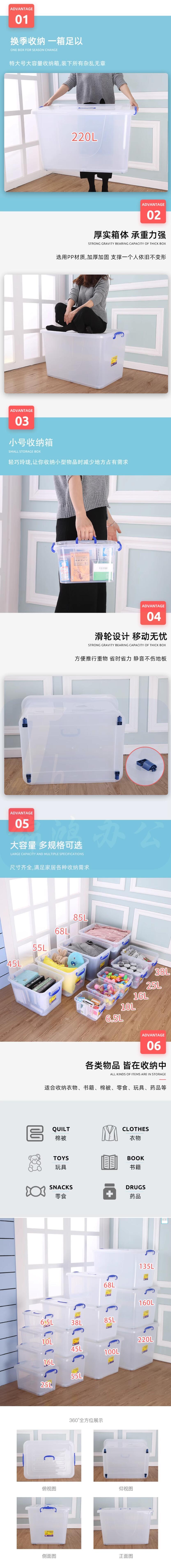 多功能收纳箱储物箱食品级塑料整理箱2686 52*37*32cm(55L)
