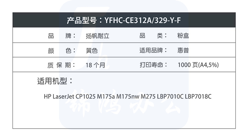 扬帆耐立YFHC CE312A(126A)/329黄粉(带芯片)