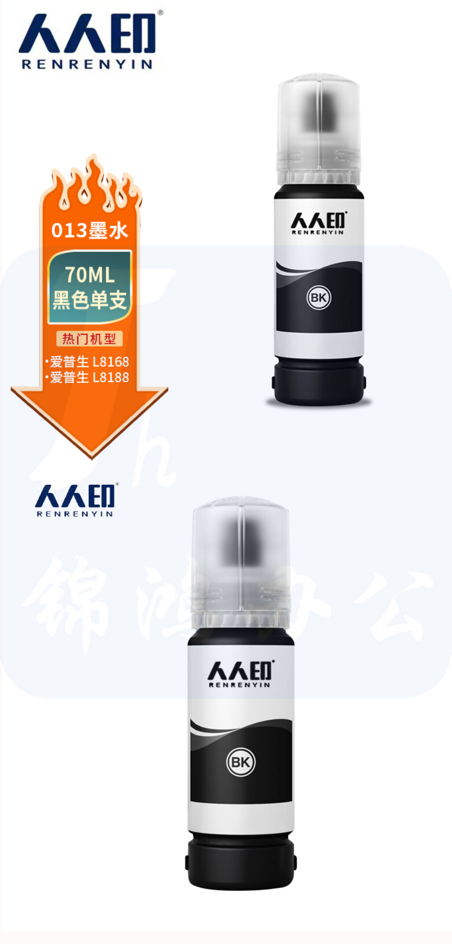 人人印 013BK黑色墨水适用爱普生墨水Epson L8168打印机墨水L8188