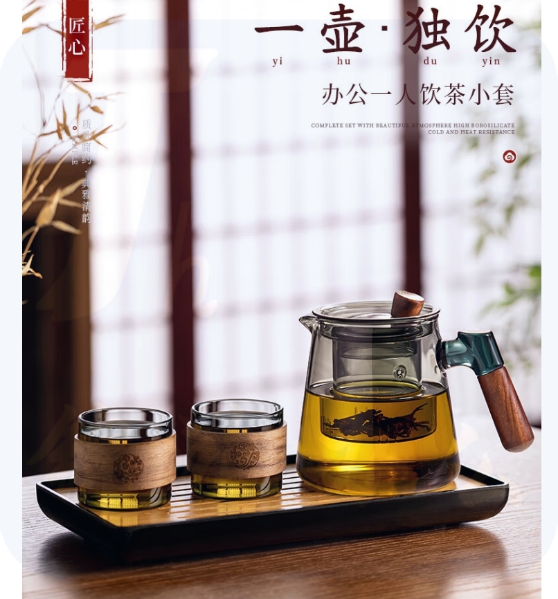 泡茶壶茶水分离套装 一壶二杯+托盘 货号:JC