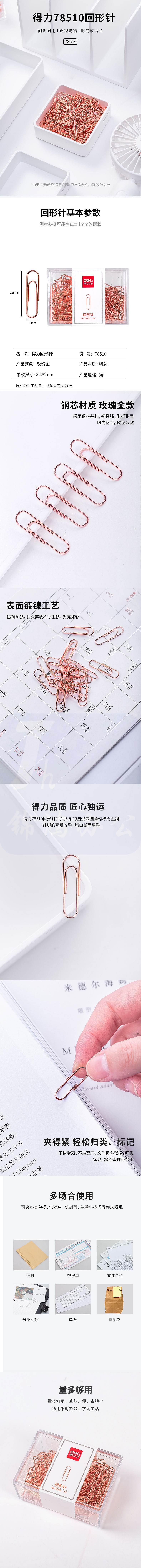 得力(deli)29mm玫瑰金回形针 3#金属曲别针100枚/盒 78510