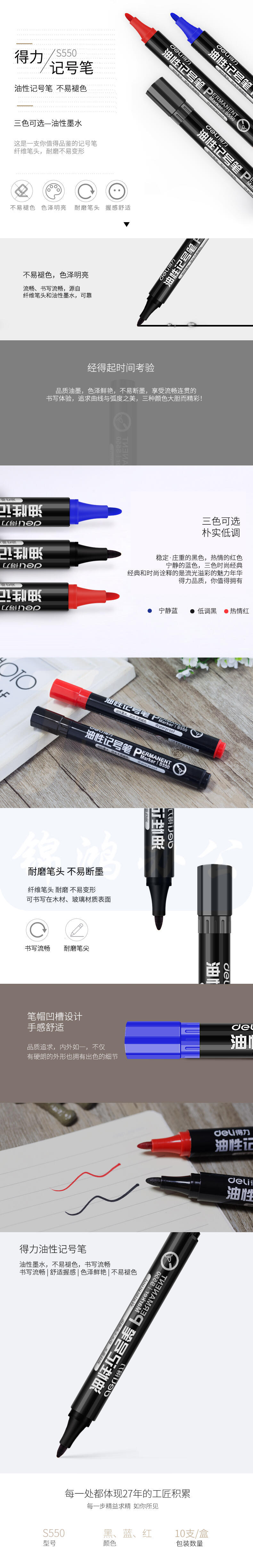 得力(deli)蓝色油性粗头记号笔物流大头笔 签名笔马克笔办公用品 10支 S550
