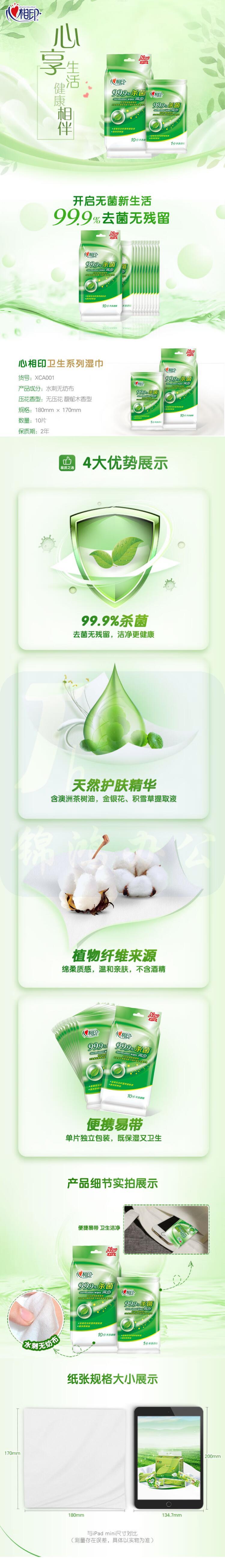 心相印 XCA001消毒湿巾 10片独立装 170mm*180mm