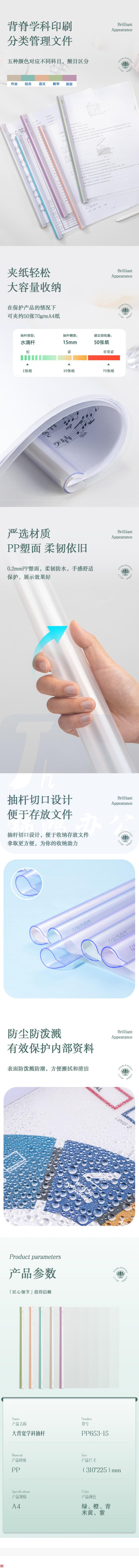 得力(deli)15mm水滴杆拉杆夹310*225mm抽杆夹5只装 PP653-15 (约容纸70张)