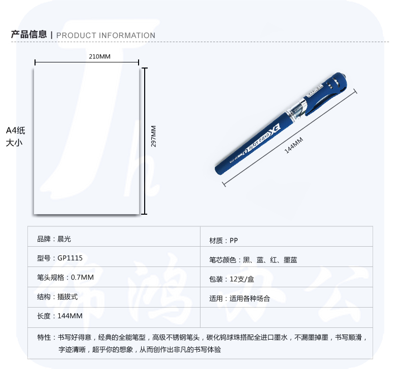 晨光 中性笔 0.7mm黑色 经典子弹头签字笔 办公水笔GP1115