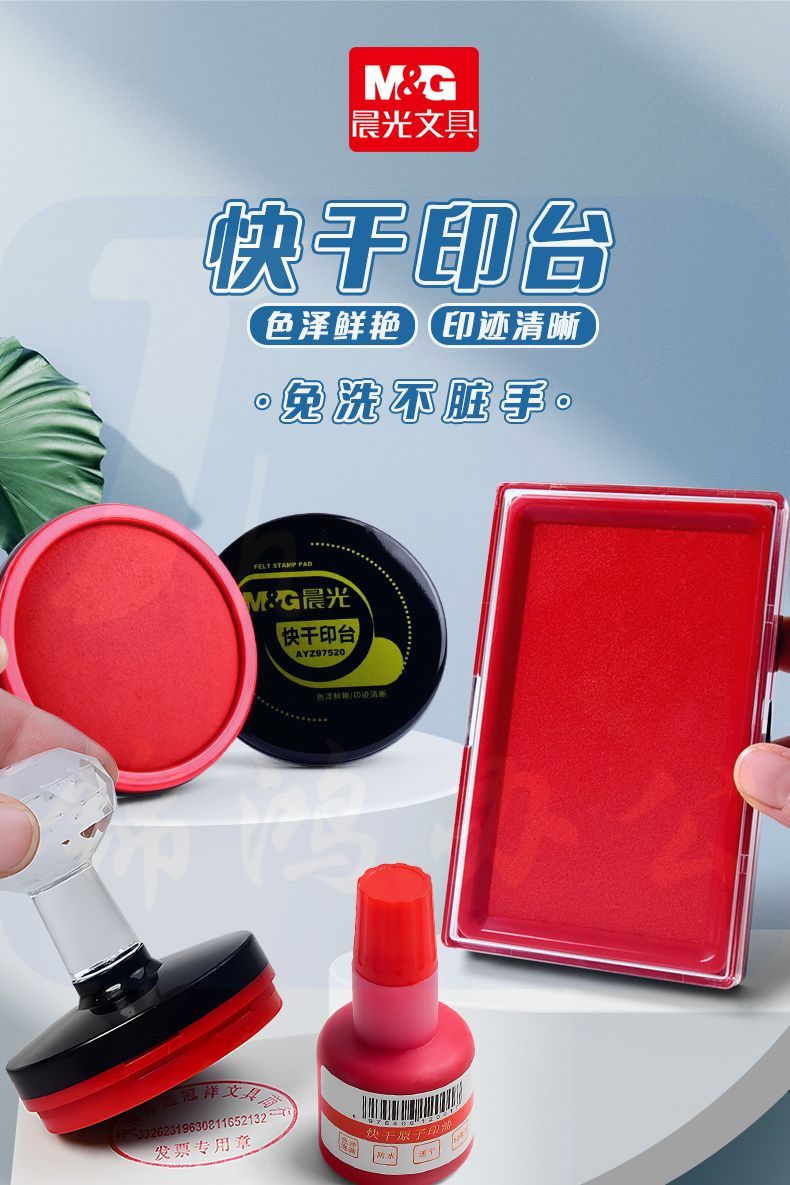 晨光(M&G)内盘面116*66mm透明外壳方形快干印台印泥AYZ975L3 红色