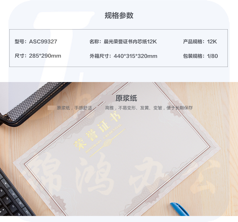 晨光荣誉证书内芯纸12K(50张/包)ASC99327