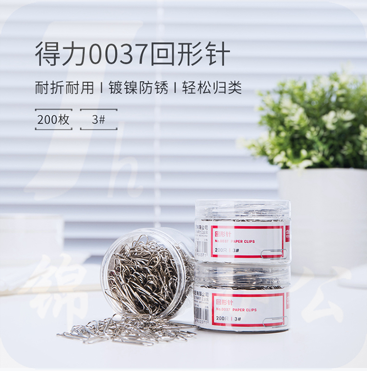 得力(deli)0037 29mm镀镍回形针200枚/筒 12筒/组