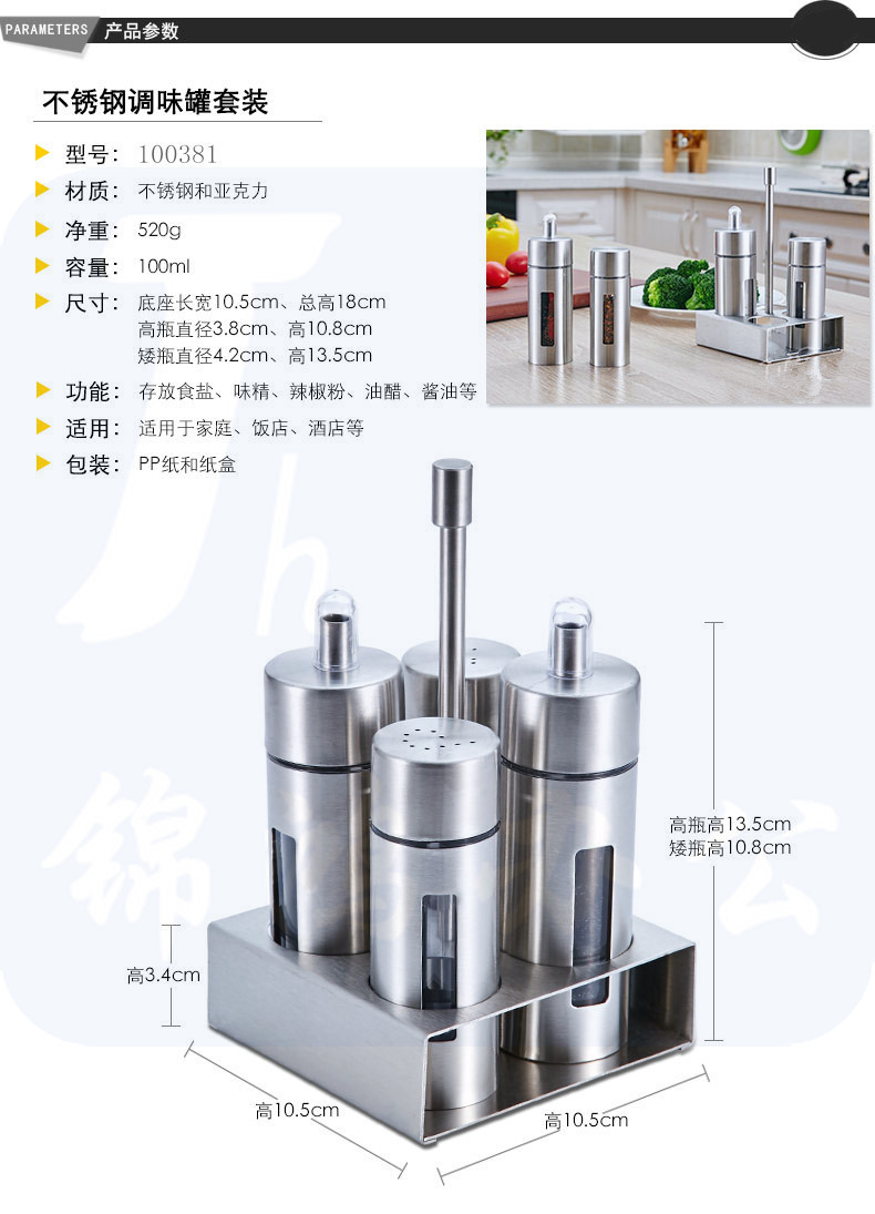 304不锈钢味瓶调料盒胡椒盐罐醋瓶酱油瓶油壶餐桌调味瓶四件套装