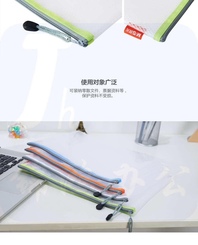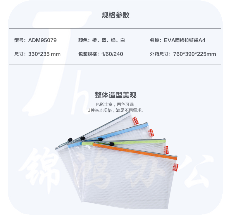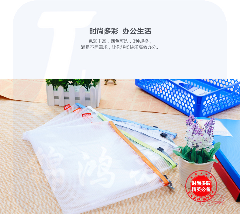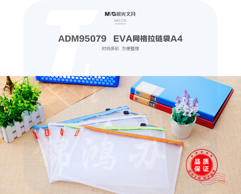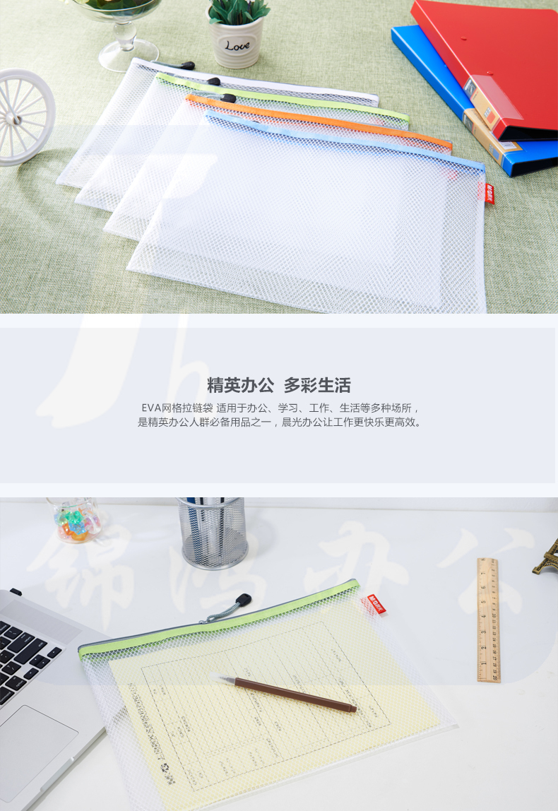 晨光 A4文件袋资料袋EVA 网格拉链袋 4个装 文件票据收纳袋ADM95079