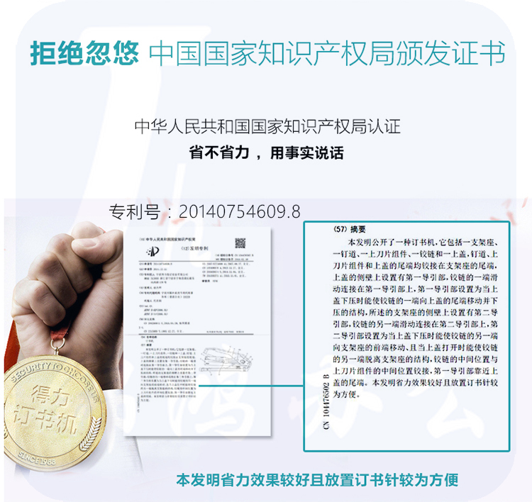 得力 省力订书机 0467 订纸厚度20页/80g 入纸深度50mm 蓝色
