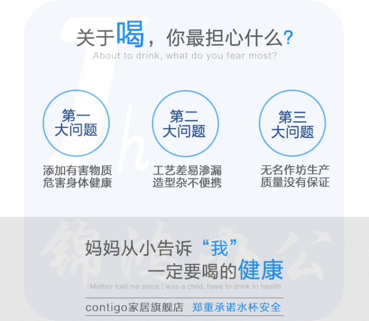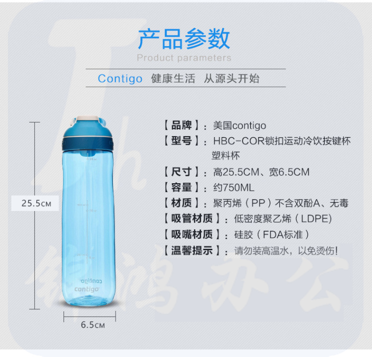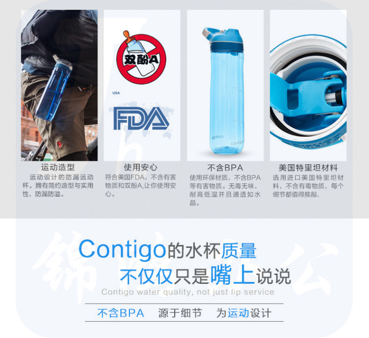 CONTIGO 美国Contigo 按键水杯户外运动随手杯密封防漏 天蓝色HBC-COR001