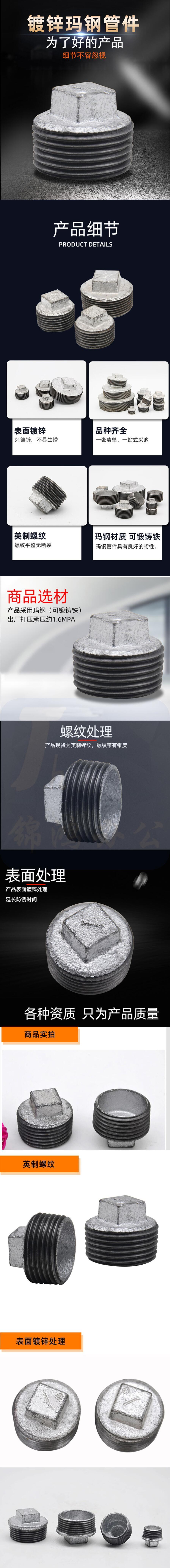 赣玛 DN15 玛钢国标带边管堵4分外丝堵头