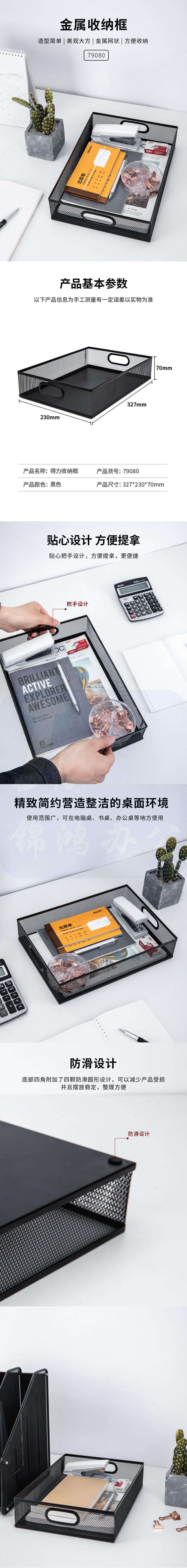 得力(deli)收纳框 票据篮文件筐文件文件栏收纳盒 无盖 327*230*70mm-79080