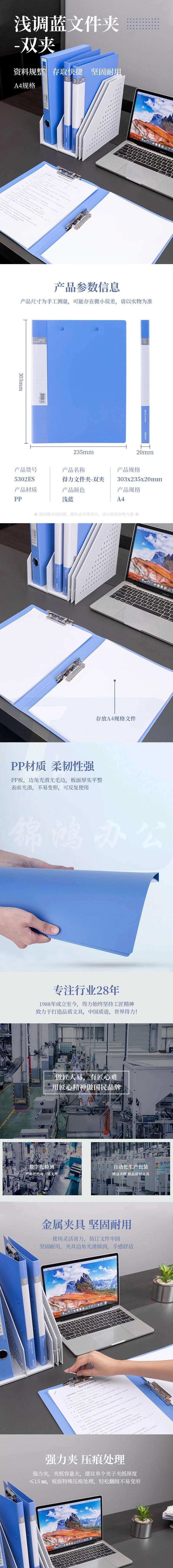 得力 A4文件夹 双强力夹+插页资料夹金属文件夹 5302ES