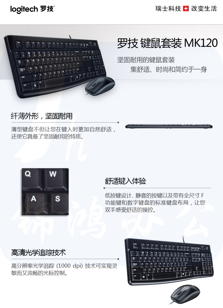 罗技 MK120键鼠套装 有线键盘鼠标套装 USB即插即用 黑色