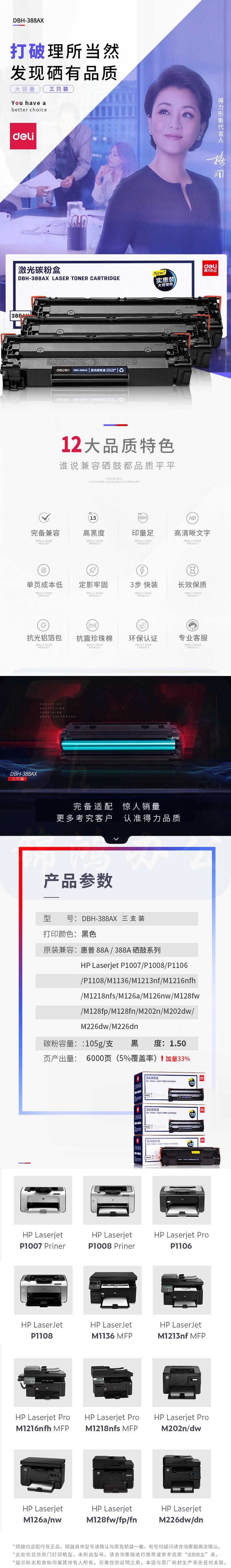 得力DBH-388AX3黑色硒鼓3支装 88A大容量打印机硒鼓单支打印量2000页*3支装
