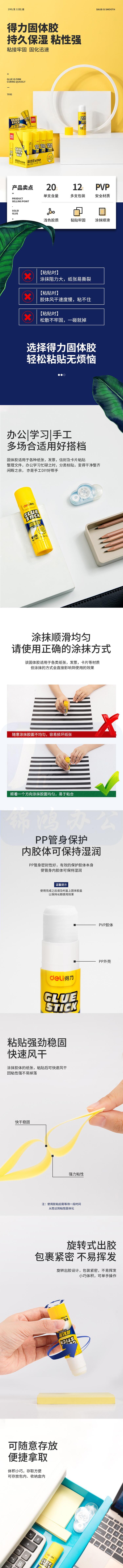 得力(deli)15g高粘度固体胶棒12支装 PVP固体胶水 无甲醛快干耐用胶棒7090