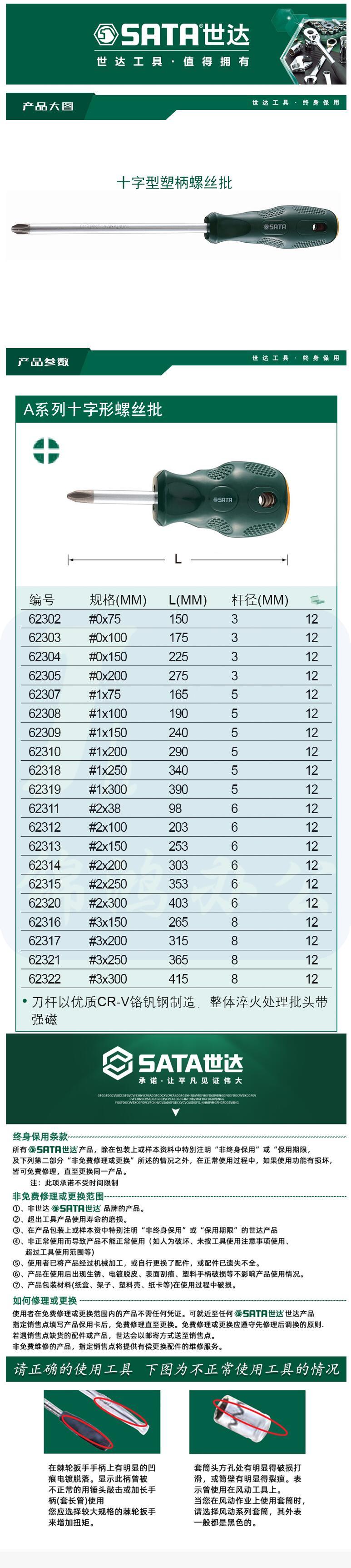 世达 62304 十字形改锥 螺丝批#0x150MM