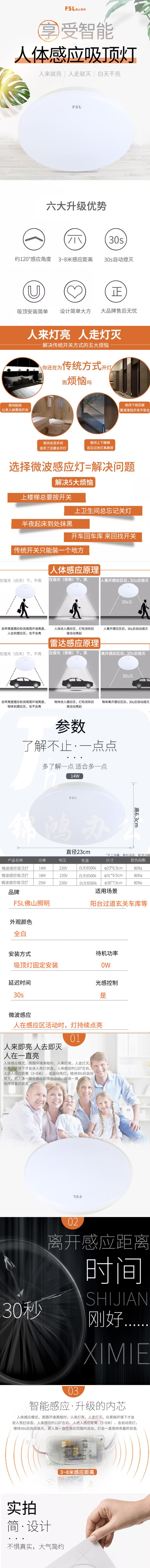 佛山照明 18W 微波光敏感应吸顶灯 人体感应LED吸顶灯