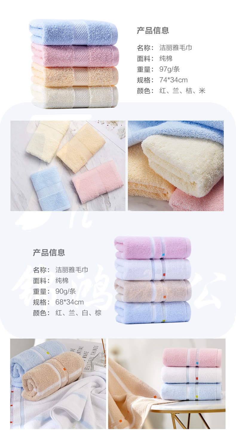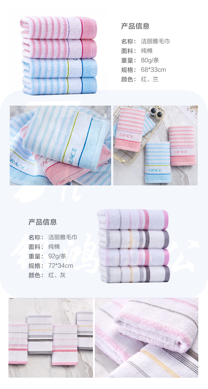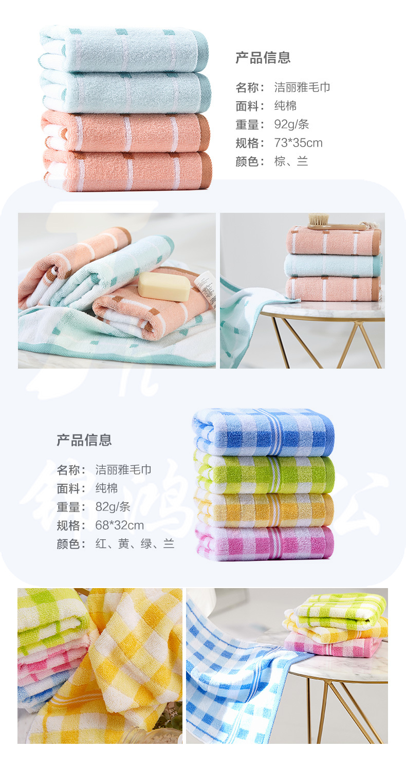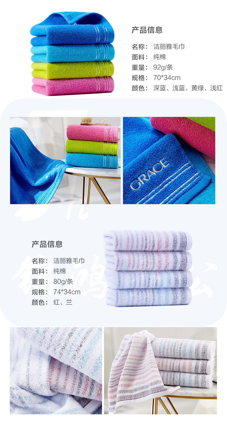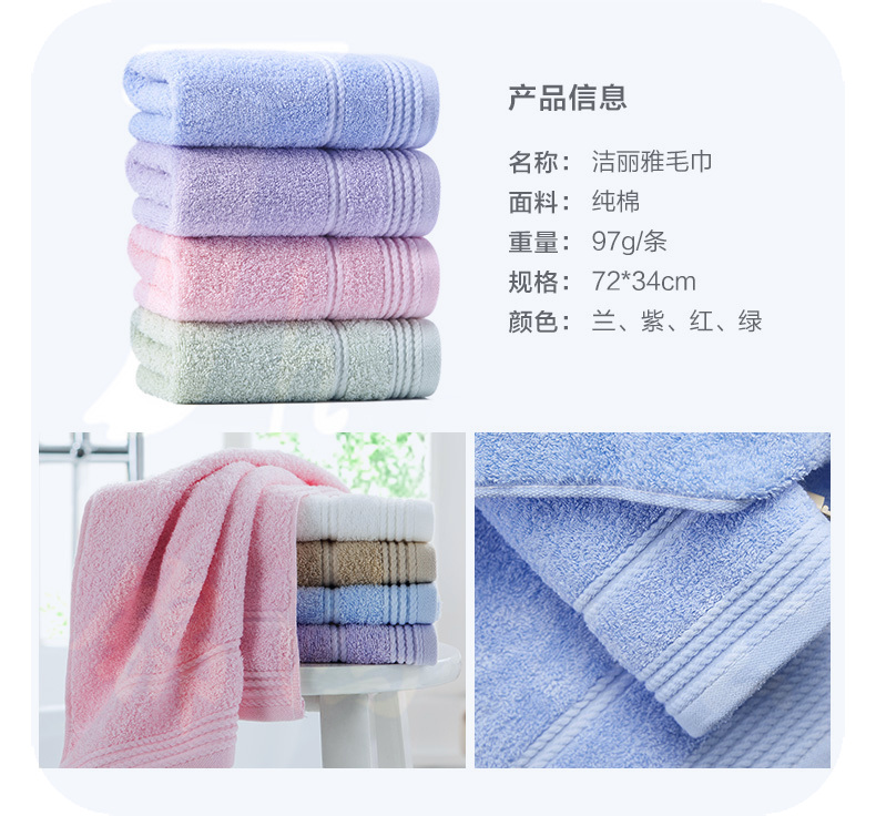 洁丽雅6714毛巾纯棉 洗脸面巾 素色条纹大毛巾 70*34cm