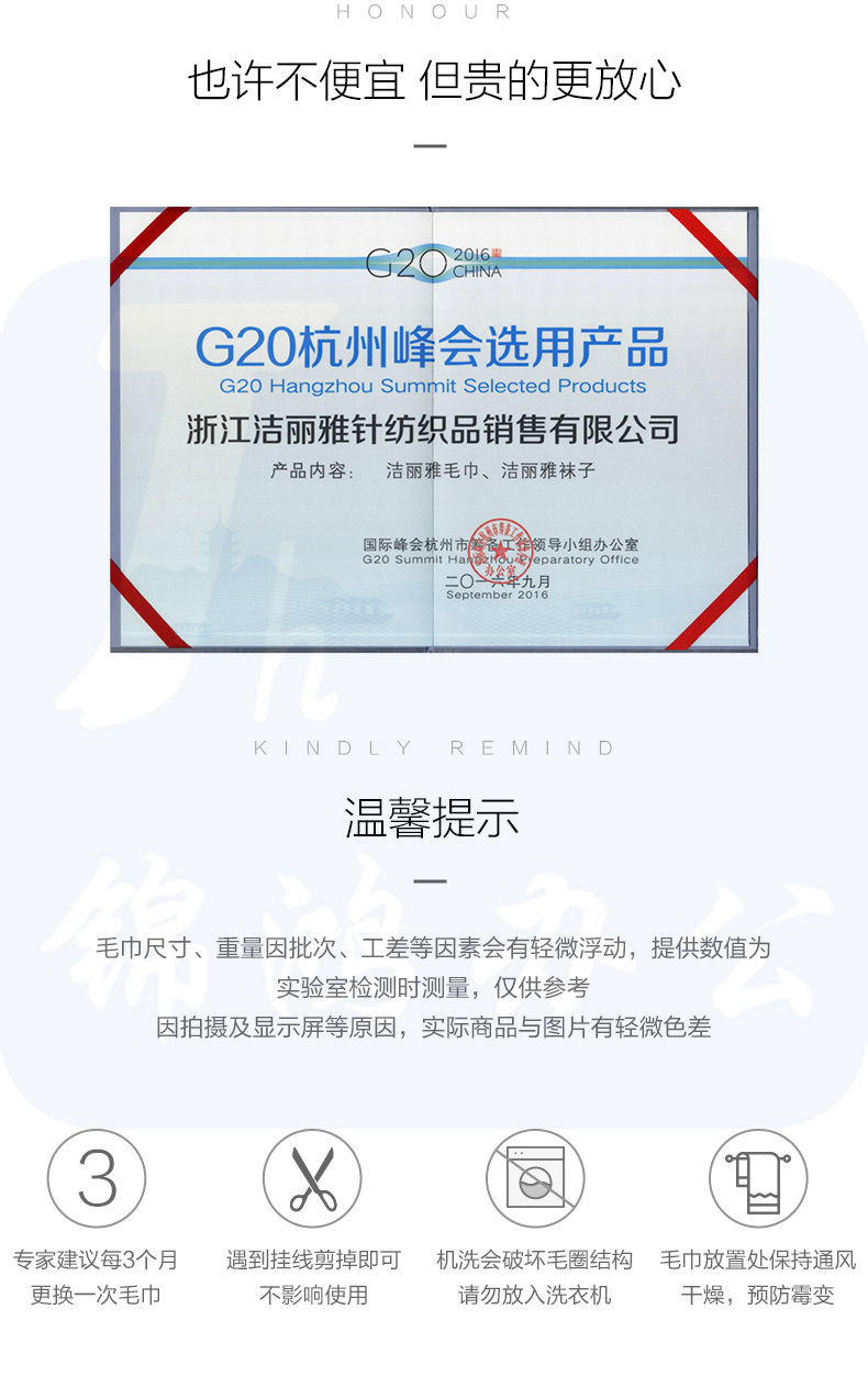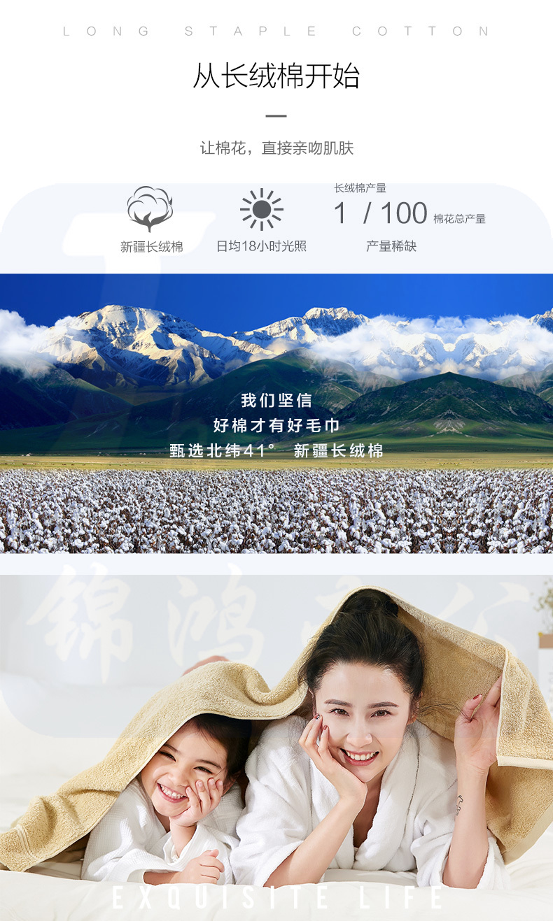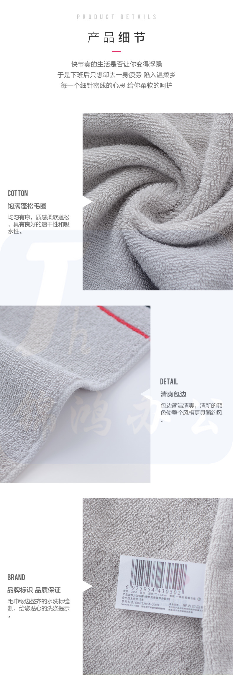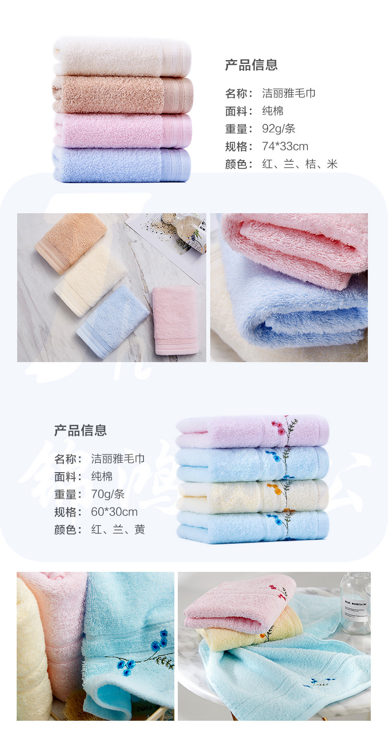 洁丽雅6714毛巾纯棉 洗脸面巾 素色条纹大毛巾 70*34cm
