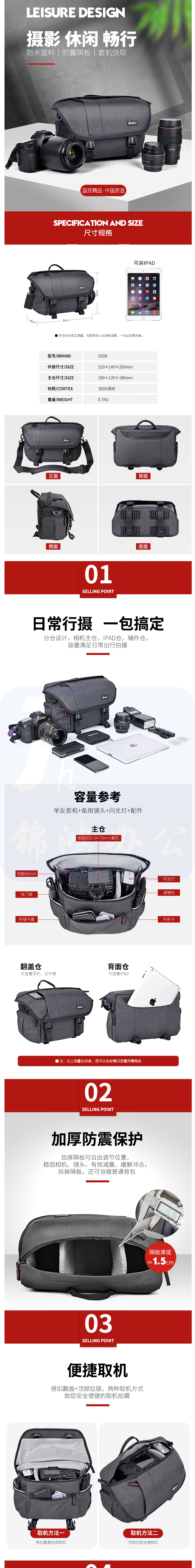 锐玛 SS08 专业单肩斜跨相机包佳能尼康索尼微单背包大容量摄影包单反包
